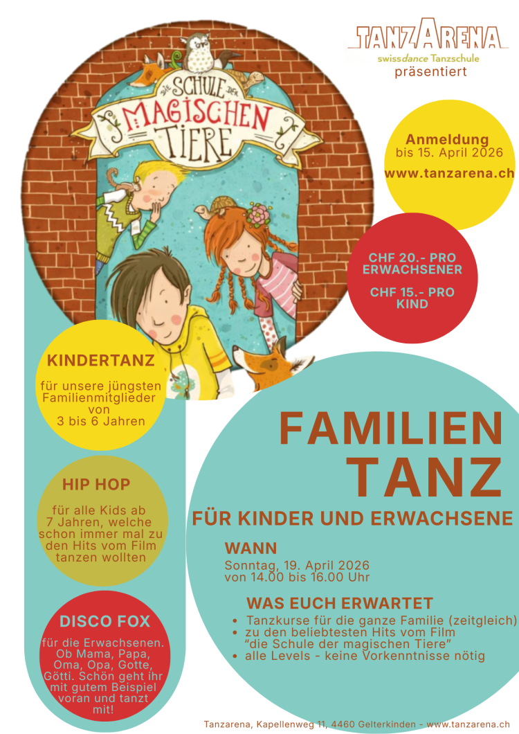Mo - Fr, 16.00 – 18.00 Uhr oder senden Sie uns ein Email an info@tanzarena.ch.