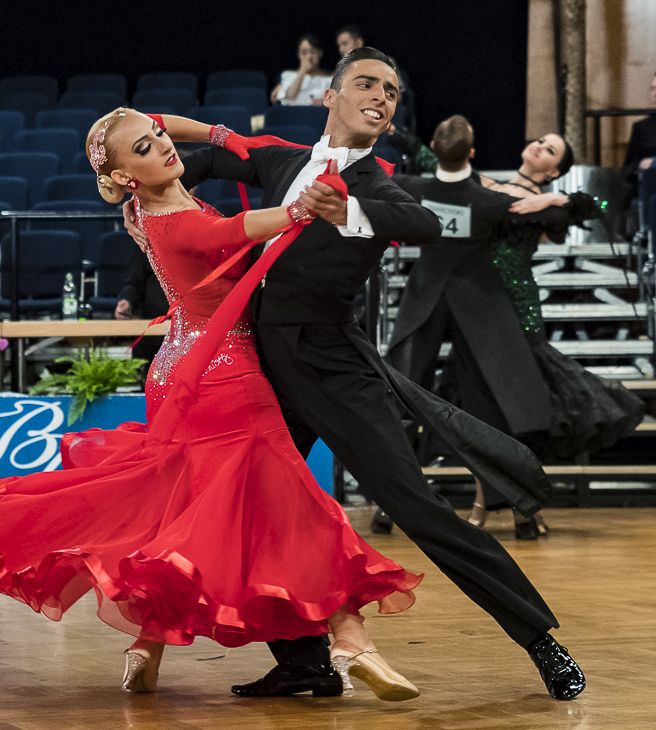 Eine große, nicht mehr ganz junge Frau zieht die Blicke auf sich. Sie ist sehr schön und ganz in schwarz. Der kurze Rock, die Nahtstrümpfe, das langgelockte Haar. Dazu bilden knallrote Tanzschuhe den Kontrast. Sie setzt die Schritte ruhig, tanzt in den Boden hinein. Ihre Wange schmiegt sich an die Wange des Tänzers, auf den Gesichtern spiegelt sich die Freude an der gemeinsamen Bewegung.